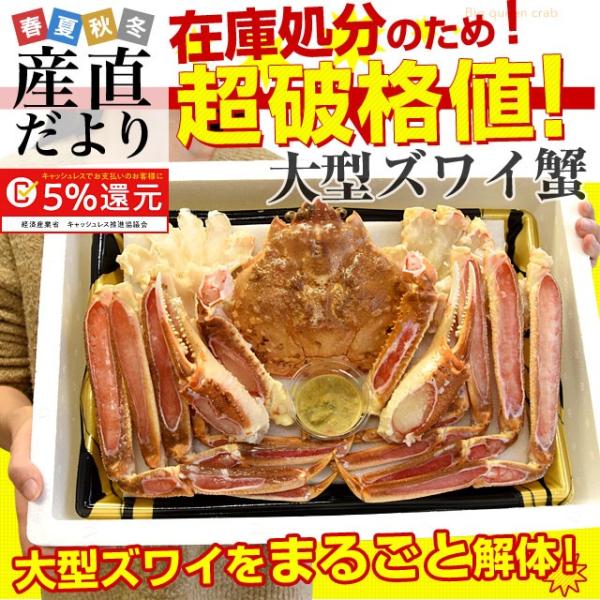 送料無料 超大型の生ズワイガニ カニみそ付 まるごと1尾 産直